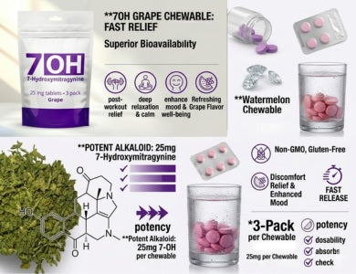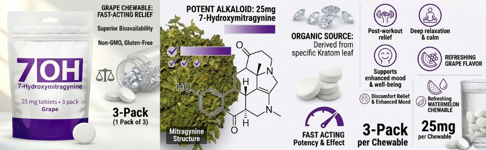 Grape Flavor 25mg 7-Hydroxymitragynine Tablets
